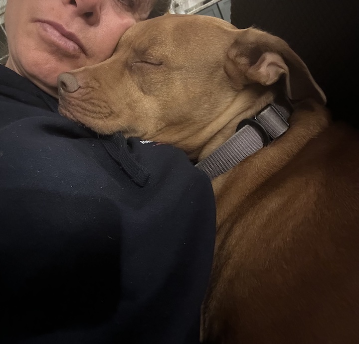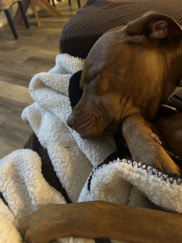 When my dad died in April of 2024 I inherited his black lab, Buck. My pitbul, Titan, HATED buck. Buck was about 4 years old, Titan about 5. They met as young dogs but Titan never accepted Buck. He would growl, lunge, full on attack. We worked on pack walks, etc. but honestly never dedicated enough time to it because they didn’t live together so we just said nevermind.